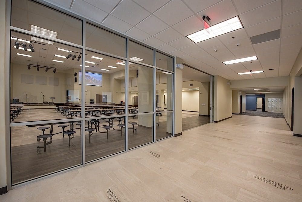 The new First Baptist Christian Academy Classroom Building is a two-story Hybrid Class A structural steel and pre-engineered steel structure with a masonry façade. The 36,004 square-foot facility consists of a cafetorium with a stage, a commercial catering kitchen, band rooms, science labs, administration offices and other classrooms.