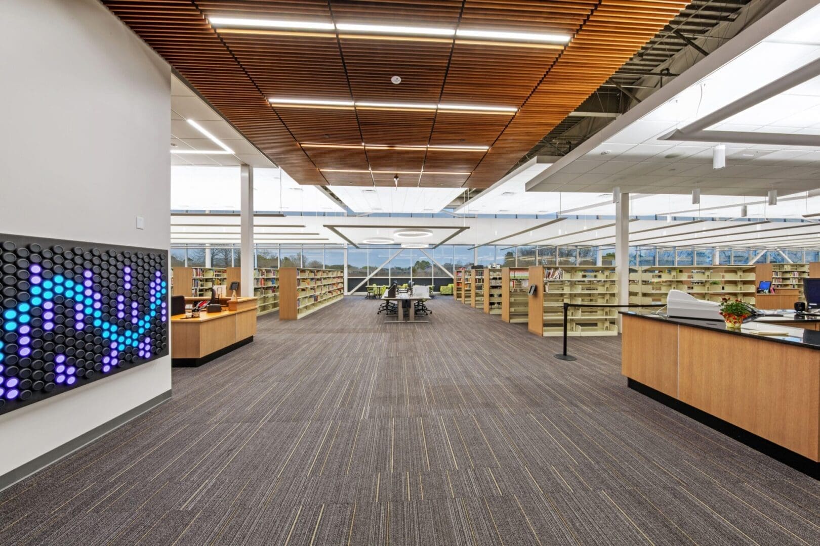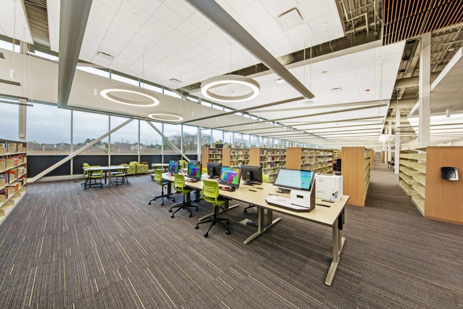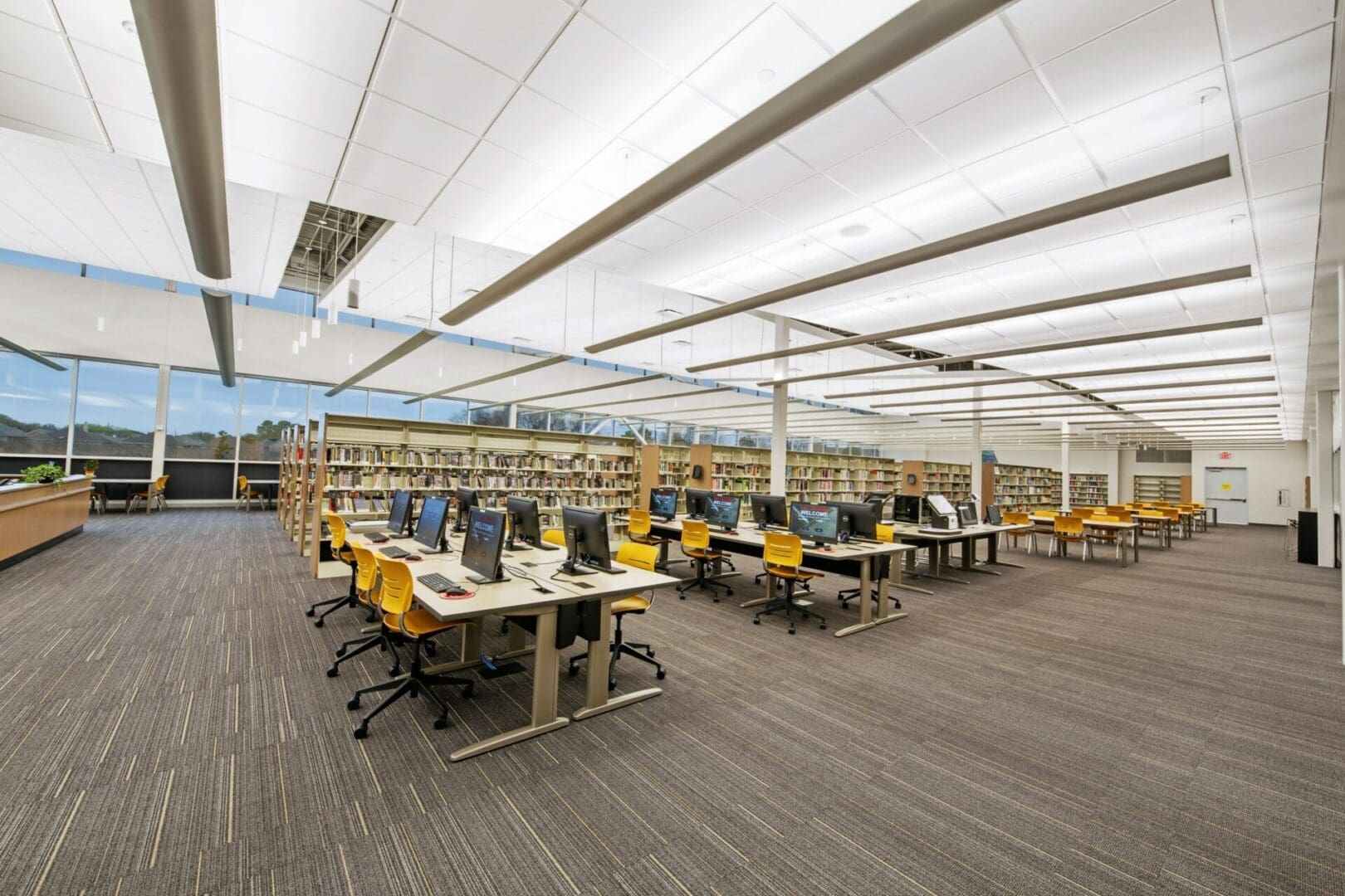 The new Fort Bend County Mission Bend Branch Library is a ground-up structural steel building with perforated metal panels, glass, and a standing seam metal roof. The 23,779 square-foot library includes conference and meeting rooms, study rooms, computer rooms and special areas for the youth, young adults and adults. The facility features an Everbright interactive light panel for animation, and offers a variety of programs for children, youth, and adults.
